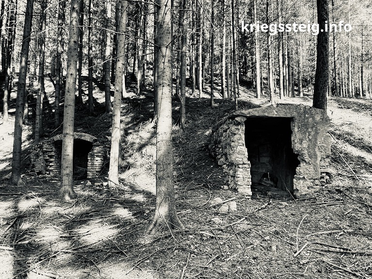 Nun geht es die „Adlitzgrabenstraße“ nach rechts. Unmittelbar nach dem ehemaligen Gasthaus „Zur Weinzettelwand“, das heute ein Wohnhaus ist, führt ein Steig links steil bergauf. Wir bleiben immer rechts des kleinen Baches auf dem schmalen, teilweise verwachsenen Weg und durchschreiten nach zehnminütigem Aufstieg das „Rumpler-Viadukt“ der Semmeringbahn bis wir zu einer Wegkreuzung kommen.